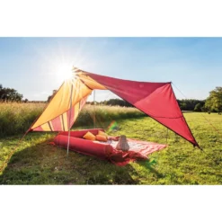 | Merkmale | 3 Abspannleinen mit (je Ø 4 mm x 350 cm) mit Aluminium Dreilochspanner, 3 verstärkte Ösen, inklusive Aufbewahrungsbeutel mit Kordelzugverschluss, inklusive Tasche und Grundplatte für optionales Gestänge, SBS Marken Reißverschluss Größe #10, UV 60 Schutz (Standard 801) |