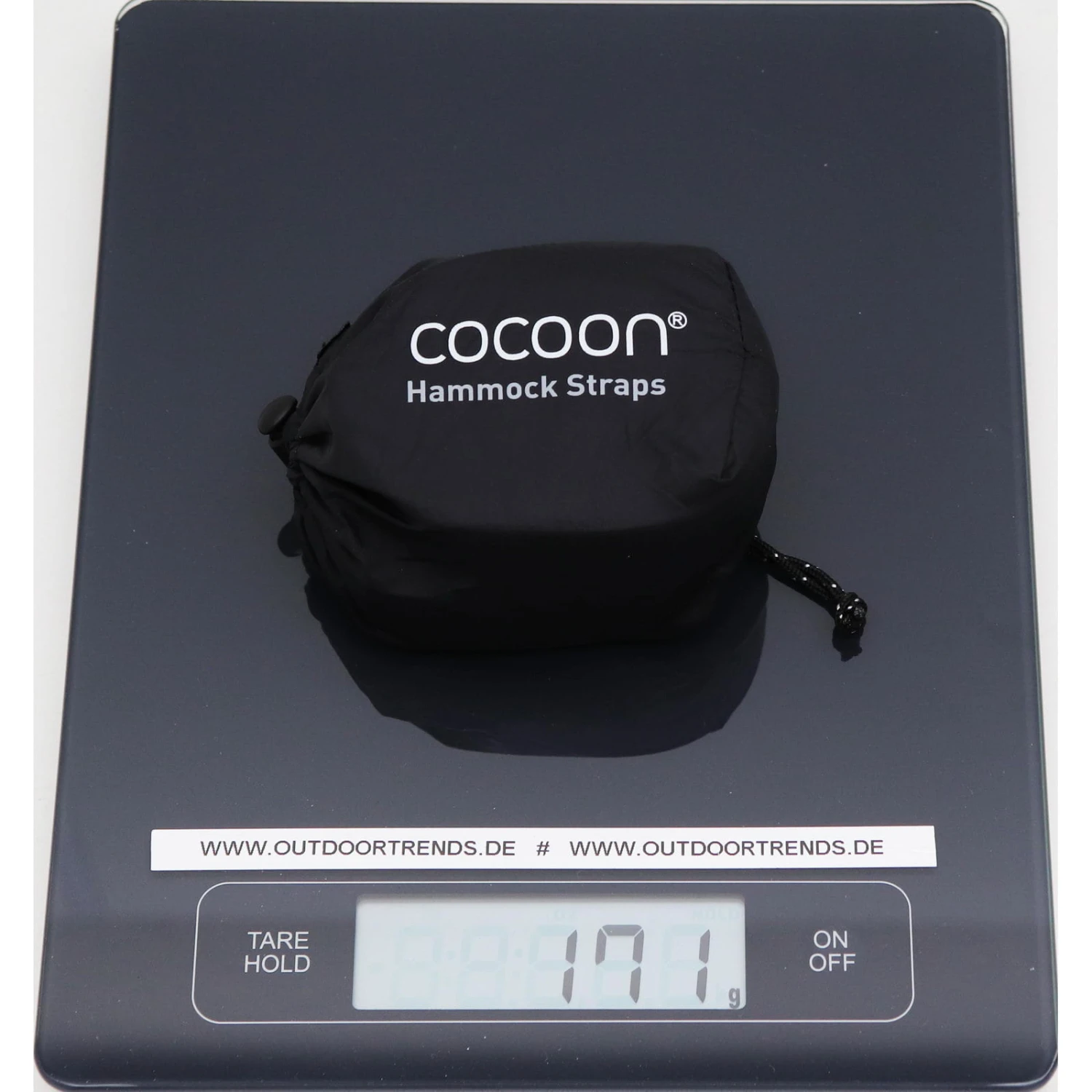 Die praktischen Hammock Straps von Cocoon aus 100% high-strength Polyester dienen zur Befestigung von Hängematten an Bäumen, Stangen, etc. Mehrere Aufhängeschlaufen ermöglichen einen optimalen Aufhängewinkel für die Hängematte. Jeder Strap hat eine Länge von 310 cm und eine maximale Belastbarkeit von 90 kg, pro Paar liegt die Belastbarkeit somit bei 180 kg.