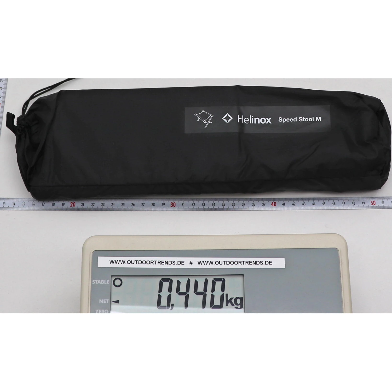 Der Speed Stool M von Helinox ist ein ultraleichter, faltbarer, kompakter und tragbarer Hocker für Camping, Rucksack- und Wandertouren. Der Rahmen besteht aus einer speziell entwickelten DAC-Aluminiumlegierung für maximale Stabilität bei minimalem Gewicht: nur 440 g (inkl. Tasche) bei einer Tragkraft von bis zu 100 kg. Die bequeme Sitzfläche besteht aus einem 600D-Ripstopgewebe mit Aramidgarn für eine lange Lebensdauer. Schneller und einfacher Aufbau durch Bungee-Cord-System im Inneren zum einfachen Einrasten des Rahmens und vormontierter Sitzfläche. Zerlegt lassen sich Rahmen und Sitz so zusammenklappen, dass sie für Aufbewahrung und Transport in den mitgelieferten Packsack passen.