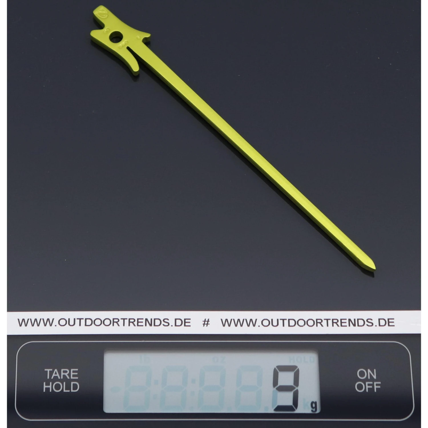 Ultraleichte Heringe waren noch nie so klug. Das Dreipunkt-Verriegelungssystem von den Airpin Heringen von NEMO hält die Schnur fest und macht Knoten, Schnurschlösser oder Abspannungen überflüssig. Die verjüngte Geometrie ist ideal für das Einschlagen in den Boden, und das 7075 Aluminium bietet Festigkeit bei minimalem Gewicht.