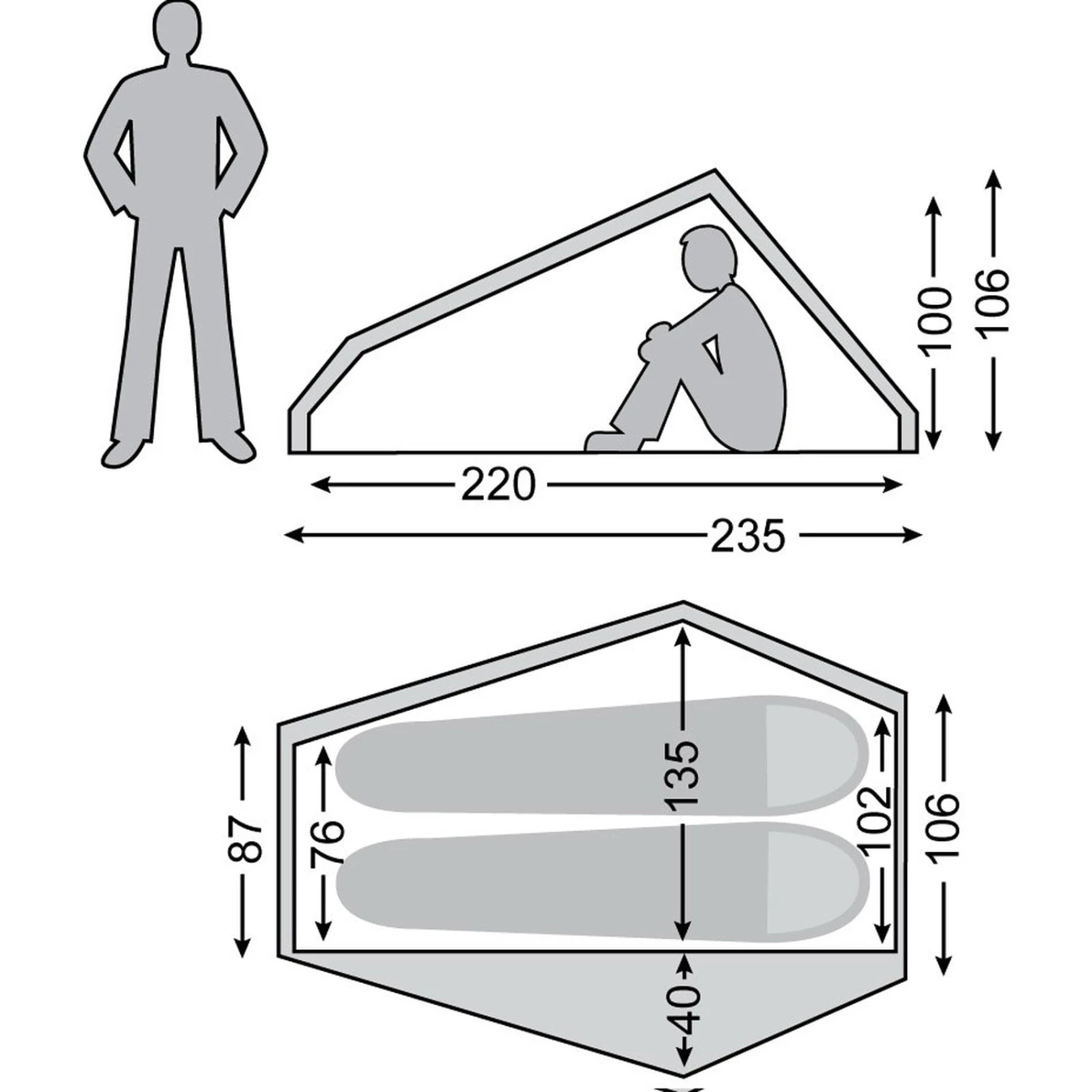 | Eingänge Außenzelt | zwei |