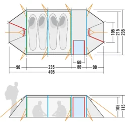 Merkmale: ; Klassisches Tunnelzelt mit vier GestĂ€ngebögen und Apside; Himmeltasche; Herausnehmbare Tasche in der Apside; Zelt und Innenzelt von beiden Apsiden-Seiten betretbar; Seitlicher Eingang in die Apside mit separat verschlieĂbarem Moskitonetz; Drei EingĂ€nge in das AuĂenzelt; Zwei LĂŒfter im AuĂenzelt; Wasserdicht versiegelte NĂ€hte; Wasserdichte Verarbeitung der Abdeckungen, LĂŒfter und Ansatzpunkte; Reflektierende Zeltleinen; Praktische Packhilfe fĂŒr Zeltleinen; VerstĂ€rkte Eckpunkte mit Gurtbandschlaufen; Zwei EingĂ€nge in das Innenzelt mit separat verschlieĂbaren Moskitofenstern; Vier Einstecktaschen im Innenzelt; WĂ€scheleine im Innenzelt; Eloxiertes Aluminium-ZeltgestĂ€nge; Inklusive PacksĂ€cke fĂŒr Zelt und GestĂ€nge