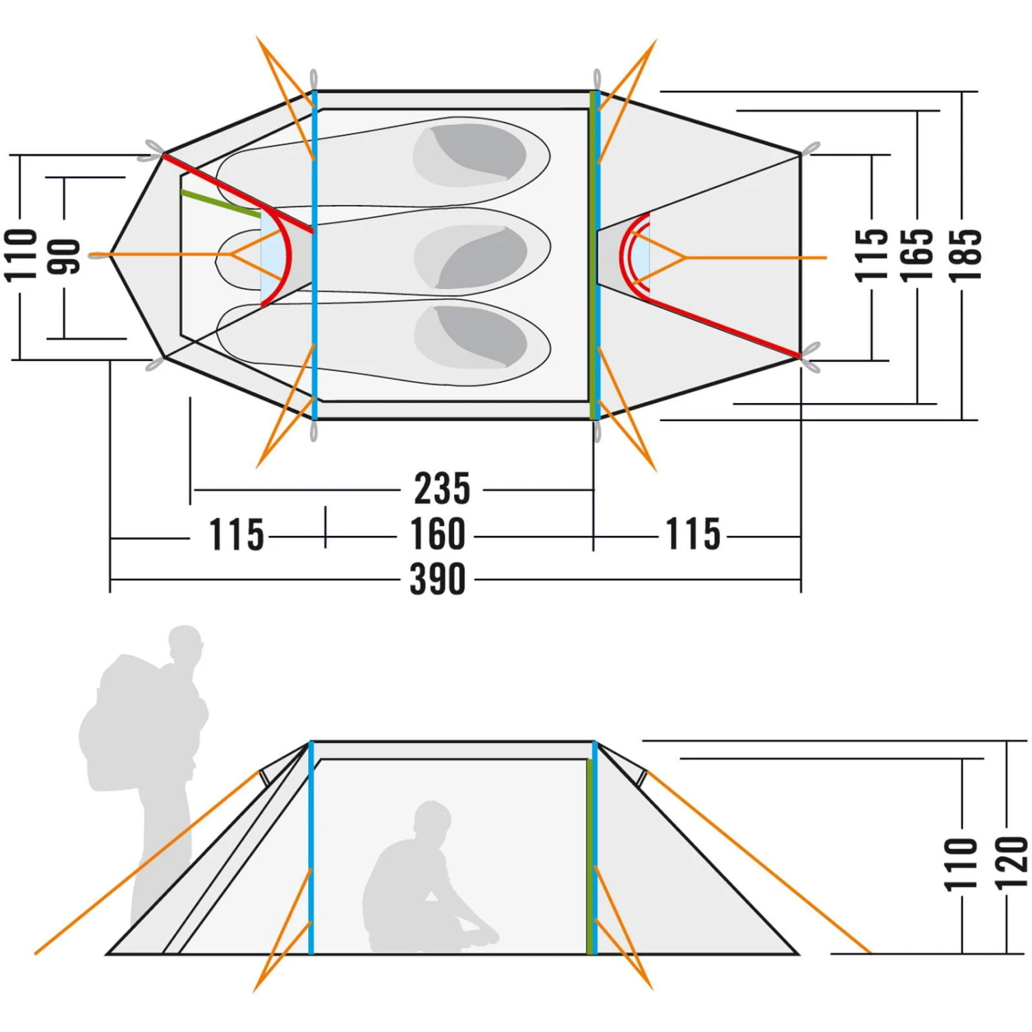Merkmale: Tunnelzelt mit zwei GestĂ€ngebögen; Apside mit Fronteingang; Zwei EingĂ€nge in das AuĂenzelt; Zwei LĂŒfter im AuĂenzelt; Wasserdicht versiegelte NĂ€hte; Wasserdichte Verarbeitung der Abdeckungen, LĂŒfter und Ansatzpunkte; Reflektierende Zeltleinen; Praktische Packhilfe fĂŒr Zeltleinen; VerstĂ€rkte Eckpunkte mit Gurtbandschlaufen; Extra langes Innenzelt (235 cm) fĂŒr mehr Liegekomfort; Zwei EingĂ€nge in das Innenzelt, einer davon mit separat verschlieĂbarem Moskitofenster; Zwei Einstecktaschen im Innenzelt neben dem Eingang; Bequeme Einstecktasche in Greifhöhe am FuĂende; WĂ€scheleine im Innenzelt; Eloxiertes Aluminium-ZeltgestĂ€nge; Inklusive PacksĂ€cke fĂŒr Zelt und GestĂ€nge
