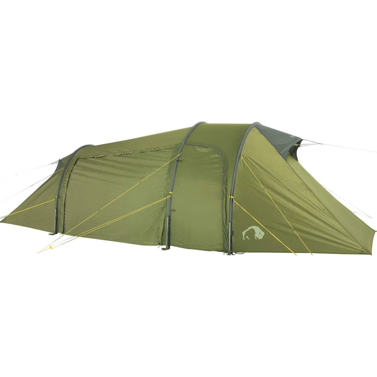Bei dem 3-Mann-Zelt Grönland 3 Vent von Tatonka lassen sich die WĂ€nde des AuĂenzelts an beiden LĂ€ngsseiten komplett hochrollen. Aus diesem Grund bietet sich dieses Tunnelzelt vor allem zum Zelten in warmen Regionen an. Das Innenzelt aus Moskitonetz schĂŒtzt dabei jederzeit zuverlĂ€ssig vor MĂŒcken und anderen Insekten. Das Grönland 3 Vent mit Seiteneingang besitzt eine gerĂ€umige Apside und ist, wie alle Tunnelzelte, sehr windstabil, wenn es mit der Schmalseite zur Windrichtung aufgebaut wird. Das AuĂenzelt des Grönland 3 Vent besteht aus vierfach PU-beschichtetem Polyester, es ist wasserdicht (WassersĂ€ule 8.000 mm), UV-bestĂ€ndig und farbecht. Der wasserdichte Zeltboden aus PU-beschichtetem Nylon besitzt eine WassersĂ€ule von 10.000 mm. Das 3-Personen-Zelt wird mit drei GestĂ€ngebögen aus leichtem, bruchfestem Aluminium aufgestellt, der hintere Bogen ist verkĂŒrzt und spart dadurch Material und Gewicht ein. Durch die Koppelung von Innen- und AuĂenzelt gestaltet sich der Aufbau sehr einfach. SelbstverstĂ€ndlich kann das Innenzelt auch ausgehĂ€ngt werden.