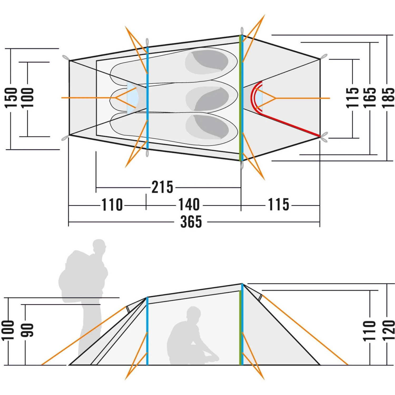 Das kompakte 3-Personen-Zelt Narvik aus der Allround-Serie von Tatonka ist aus haltbaren und widerstandsfĂ€higen Materialien gefertigt und eignet sich hervorragend als Trekkingzelt. Es besitzt einen Fronteingang und eine kleine Apside fĂŒr das GepĂ€ck. Das AuĂenzelt des Tatonka Narvik 3 besteht aus leichtem, auf der Innenseite vierfach PU-beschichtetem Polyester mit einer WassersĂ€ule von 8.000 mm. Das Material ist farbecht und UV-bestĂ€ndig. Der wasserdichte Zeltboden aus PU-beschichtetem Nylon besitzt eine WassersĂ€ule von 10.000 mm. Das Innenzelt aus luftdurchlĂ€ssigem Nylongewebe sorgt fĂŒr ein angenehmes Zeltklima. Das 3-Personen-Zelt wird mit zwei GestĂ€ngebögen aus bruchfestem Aluminium aufgestellt und spart durch die Konstruktion mit dem verkĂŒrzten hinteren Bogen Gewicht. Da Innen- und AuĂenzelt miteinander gekoppelt sind, werden sie ganz einfach gemeinsam aufgebaut. Soll das Innenzelt bei Regen trocken verstaut werden, lĂ€sst es auch aushĂ€ngen. Die Tunnelkonstruktion ist, mit der Schmalseite zum Windrichtung ausgerichtet, sehr windstabil.