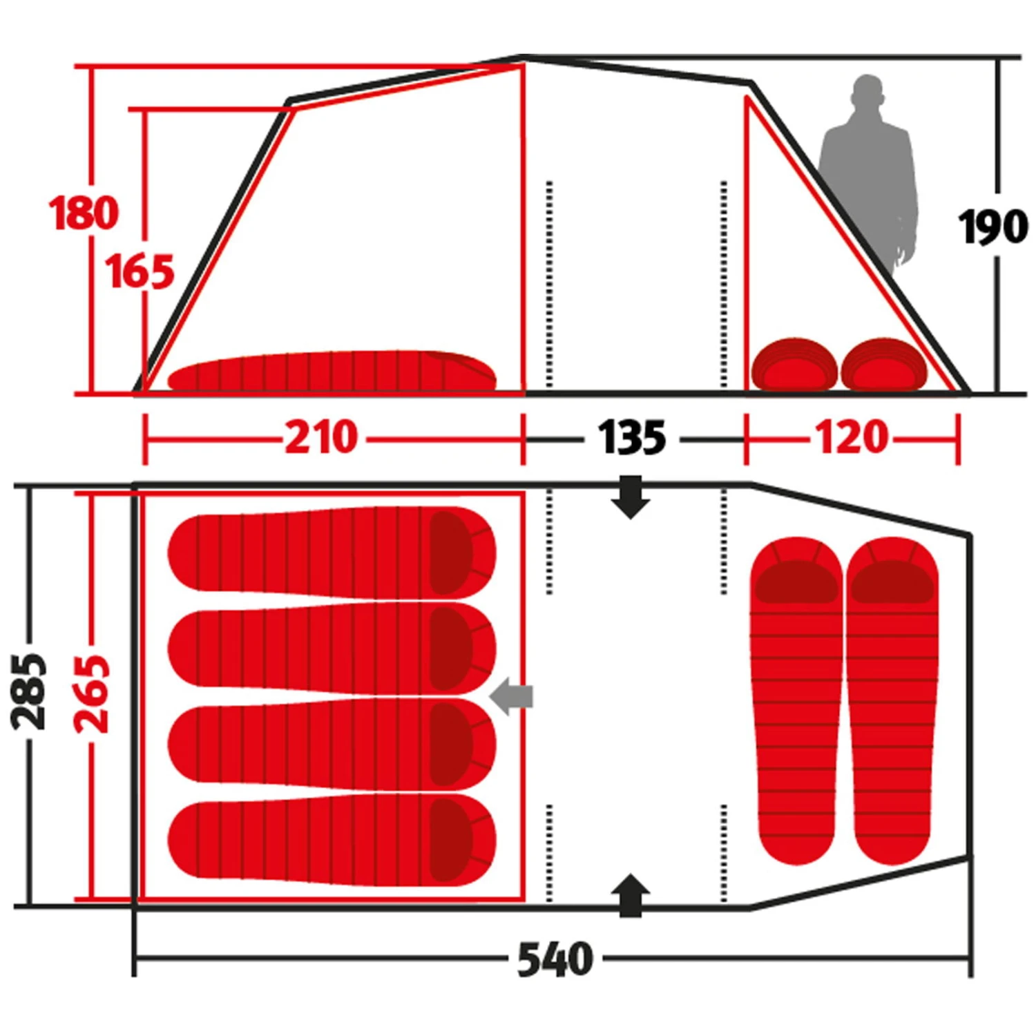 | Maße Außenzelt ca. | 540 x 285 x 190 cm |