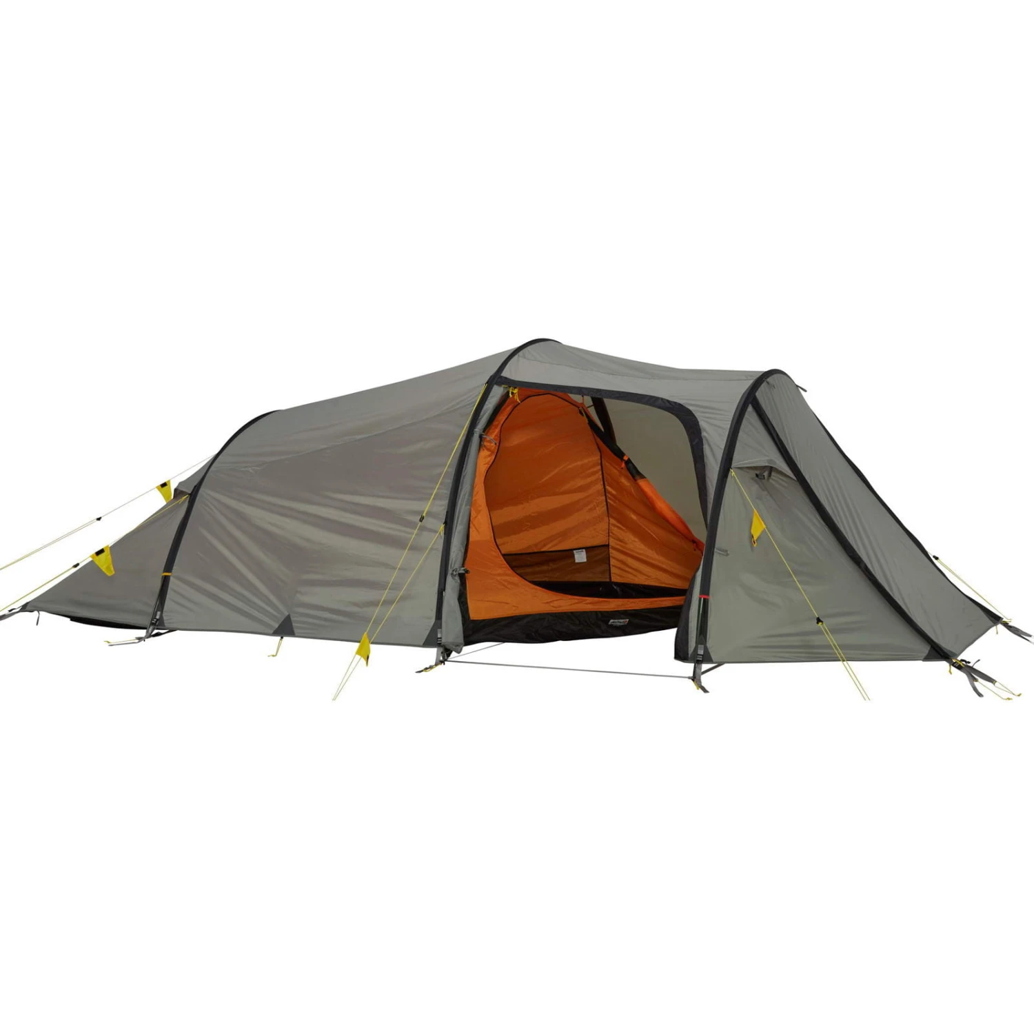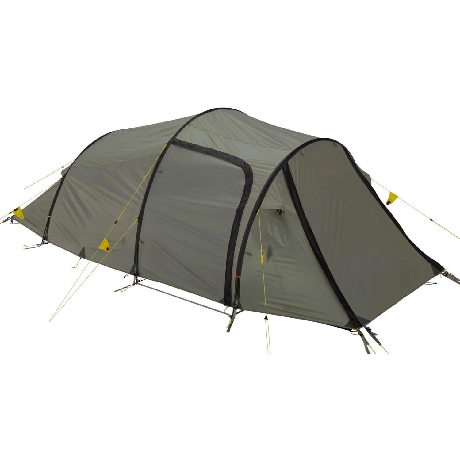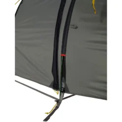 Das Outpost 3 von Wechsel Tents ist ein sehr geräumiges und komfortables Kleinfamilienzelt. Der asymmetrische Grundflächenschnitt des Innenzeltes und die komfortable Höhe lassen längere Aufenthalte im Zelt zu. Das Innenzelt hat eine Liegelänge von 270 cm, das ist einmalig! Wenn mehr Platz in der Apsis benötigt wird, kann der vordere Teil des Innenzeltes mit einem Handgriff vom Aussenzelt gelöst werden und einfach nach hinten geworfen werden. Damit steht in kurzer Zeit eine Apsisgrundfläche von 188 x 203 cm und eine Höhe von 120 cm zur Verfügung. Damit wird die geringe Stellfläche des Outpost 3 optimal ausgenutzt. Im Innenzelt befinden sich viele Seitentaschen. Der seitliche Eingang und ein vorderer Eingang machen das Handling mit Gepäck einfach. Bei aufgerolltem Vordereingang bietet sich ein hervorragender Panoramablick aus dem Zelt. Bei all dem Komfort ist das Outpost 3 dennoch ein leichtes Zelt mit geringem Packmaß und geradezu hervorragend für Radwanderungen geeignet. Im Vergleich zum Modell bis 2018 verzichtet Wechsel Tents auf die Dachlüftung im Apsisbereich.