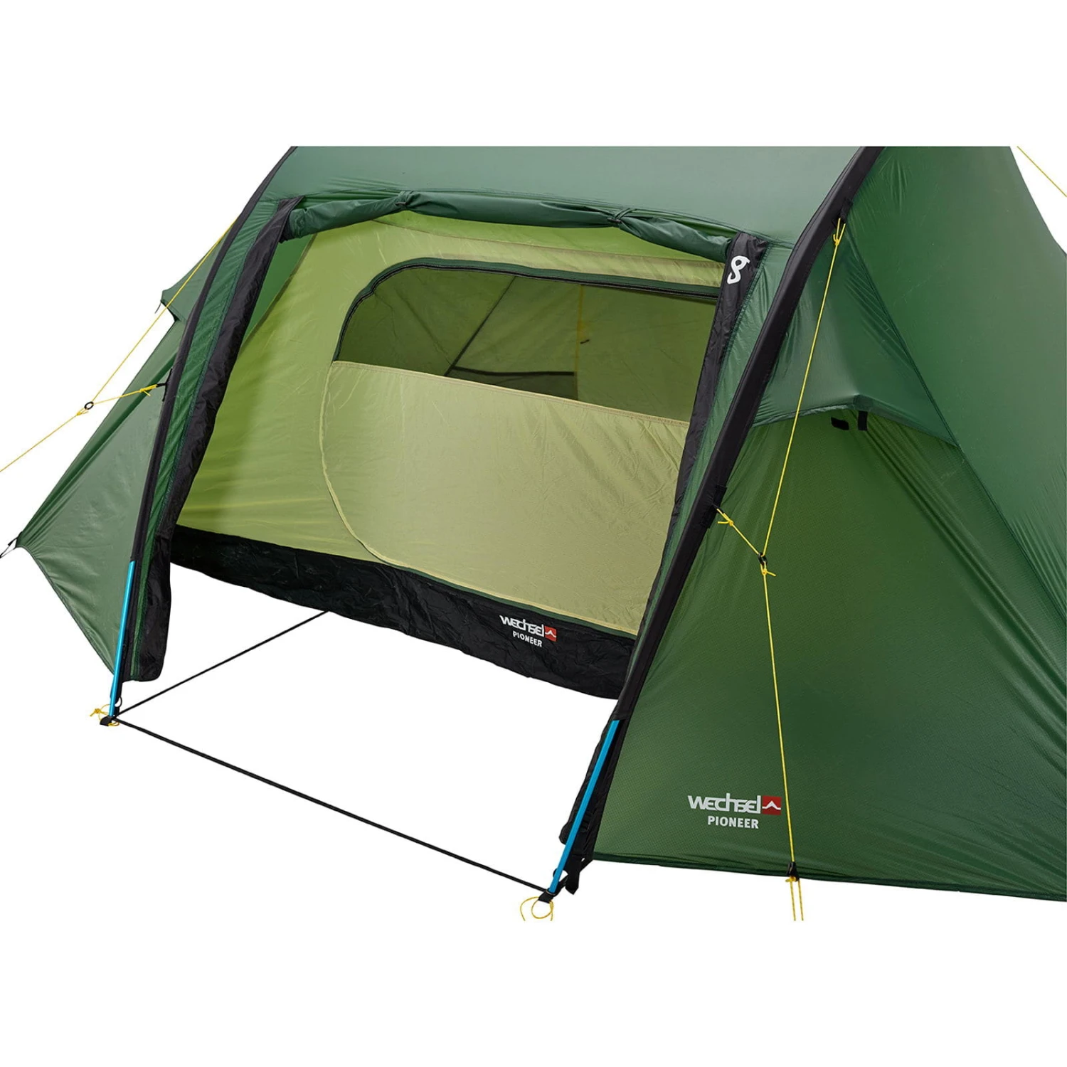 Das Pioneer ist ein 2 Personen Längsschläfer Tunnelzelt von Wechsel mit zwei seitlichen Eingängen und ist zudem einfach im Aufbau. Die geöffneten Türen lassen sich mit zusätzlichen Aufstellstangen zum Vordach aufbauen. Das Pioneer ist absolut windstabil, dank seiner kompakten Bauweise. Es verfügt über ausreichend Netztaschen im Innenzelt. Die zwei gleichgroßen Innenzelttüren sind in der oberen Hälfte mit Mosquitogazen versehen. Für einen zusätzlichen Schutz des Zeltes empfehlen wir die Verwendung eines passenden Groundsheets. Das Pioneer hat 4 verschließbare Ventilationsklappen. Im Lieferumfang sind reflektierende Abspannleinen und stabile Zeltheringe enthalten.