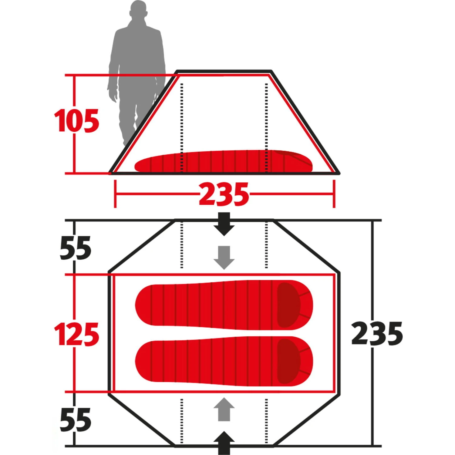 | Eingänge Außenzelt | zwei |
