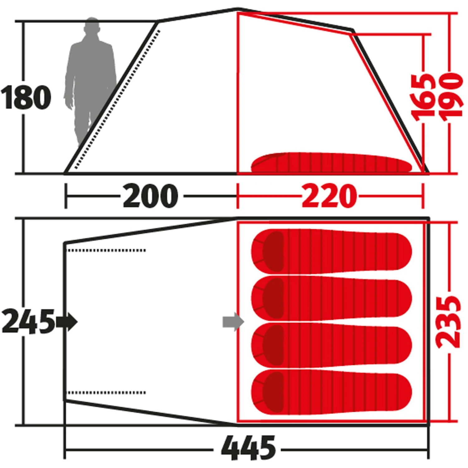 | Maße Außenzelt ca. | 445 x 245 x 195 cm |