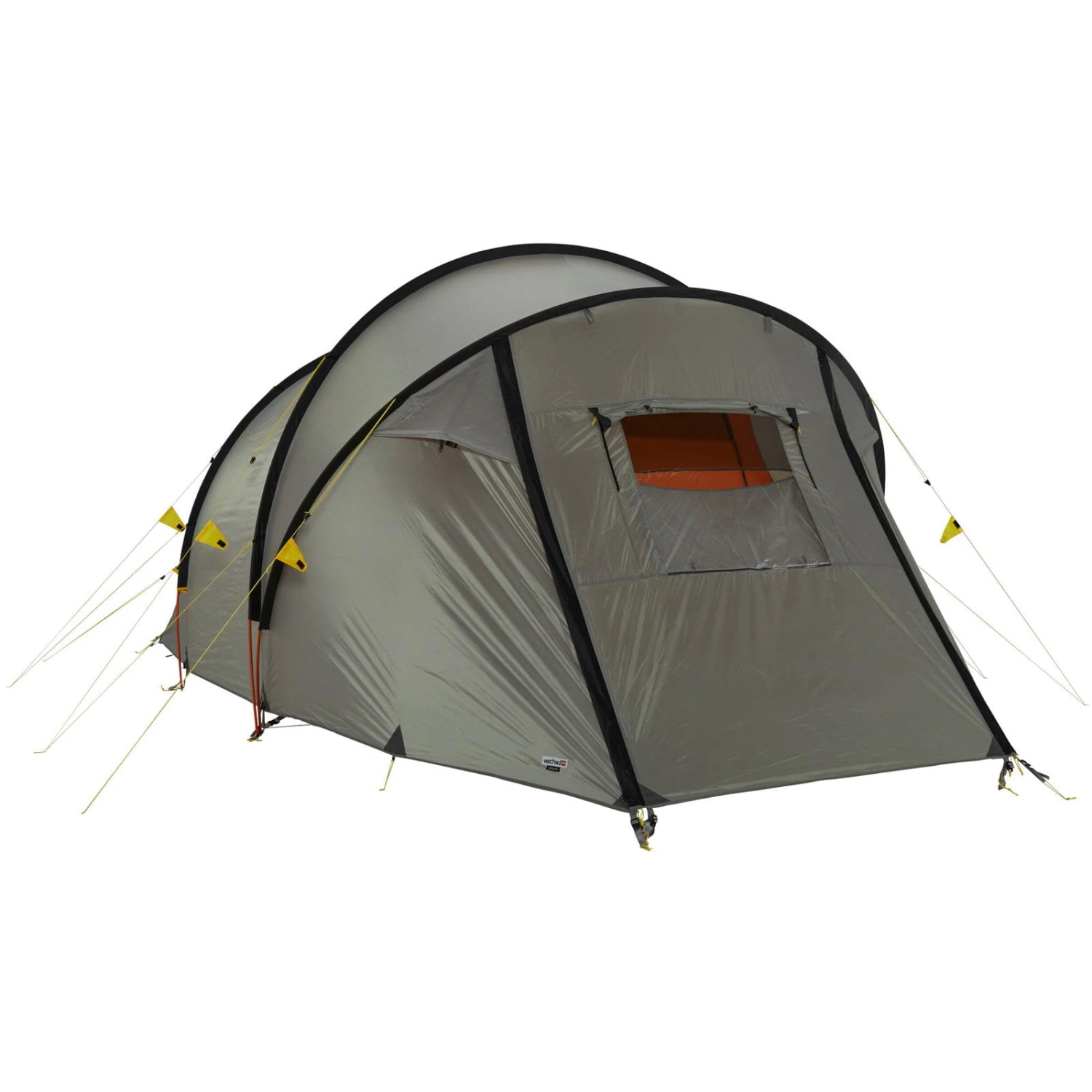 Das Voyager von Wechsel Tents ist ein Tunnelzelt für bis zu vier Personen mit kompakter Form und hoher Decke und Stehhöhe für jede Menge Komfort. In der geräumigen Apsis ist genügend Platz für ein Campingtisch und vier Stühle, sodass der Aufenthalt auch bei Regen zu einem Vergnügen wird. Typisch für ein Tunnelzelt dieser Bauart und dank farblich markierter Zeltbögen und dazugehöriger Kanäle ist das Voyager einfach und schnell aufgebaut. Das Zelt lässt sich auch von nur einer Person spielend leicht aufbauen. Das Voyager ist das ideale Zelt für kleine Familien, die kein riesiges und schweres Zelt mitnehmen und aufstellen wollen und trotzdem nicht auf den Komfort eines Familienzeltes verzichten wollen. Das Innenzelt ist breit genug für vier Isomatten und lässt sich bei Nutzung durch drei Personen auf 2/3 Breite mit einer Stoffbahn in zwei Kabinen mit jeweils eigenem Eingang unterteilen. An der Vorderseite der Kabinen befinden sich mehrere Taschen, in denen reichlich Kleinkram verstaut werden kann.Â
